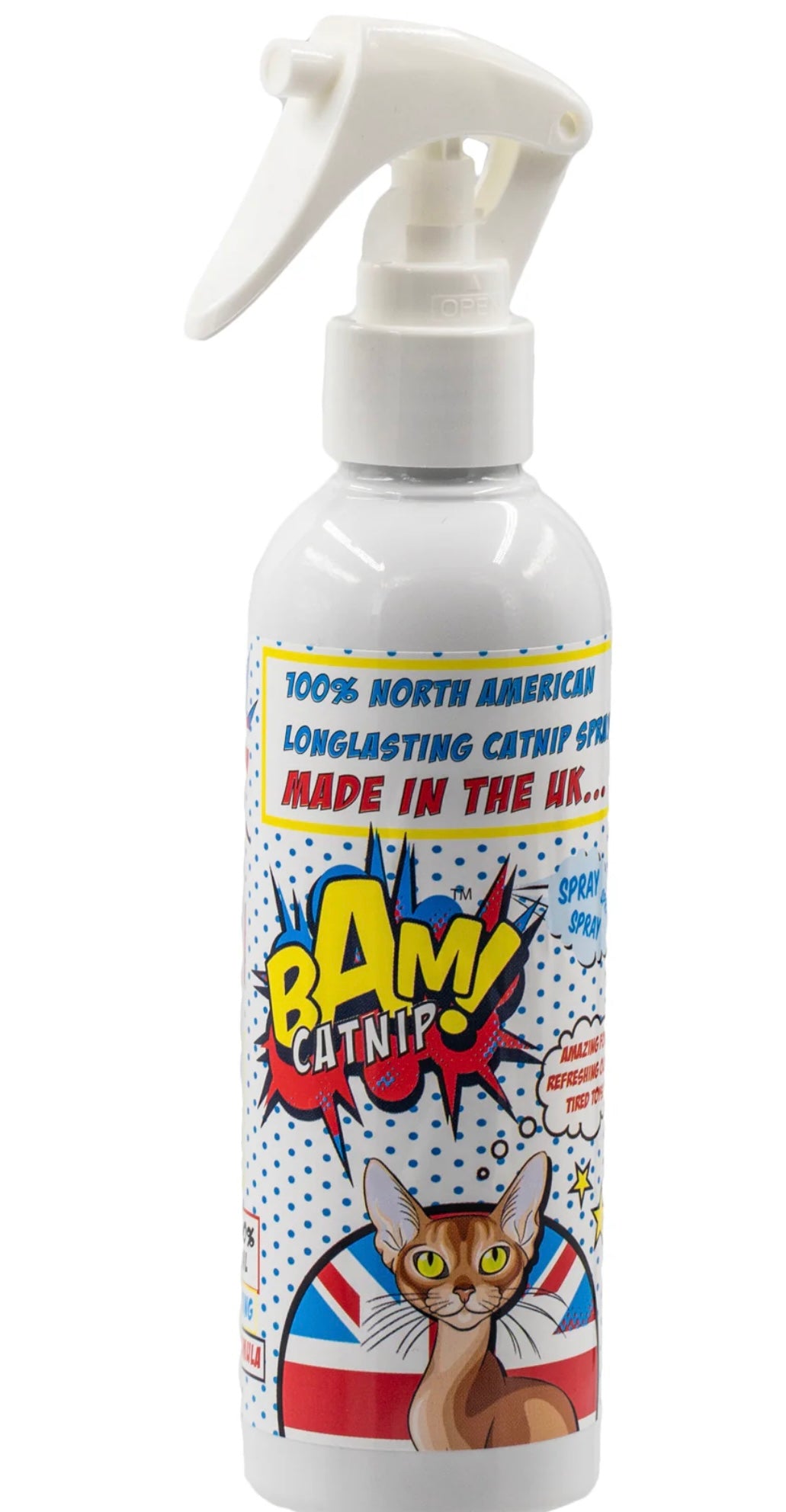 Made with 100% catnip oil, making it very powerful and long lasting, ideal for freshening up old and tired toys. BAM! Catnip Spray can be used on scratching posts, beds and cat carriers.