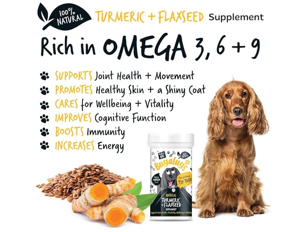 Omega 3 for dogs, cold pressed, immunity supplements, skin, hair & coat - Supports Joint Health, Flexibility, Wellbeing & Vitality - flax oil as a dog omega 3 supplements alongside Turmeric have anti-inflammatory properties helping to maintain a healthy heart and boosting brain and cognitive functions, especially in senior dogs