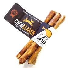 Chewllagen is a dog treat made from the collogen extracted from South American grass-fed cattle hide. The collagen proteins are hydrolysed and broken down through a heating process into the smaller and more easily digestible molecules.