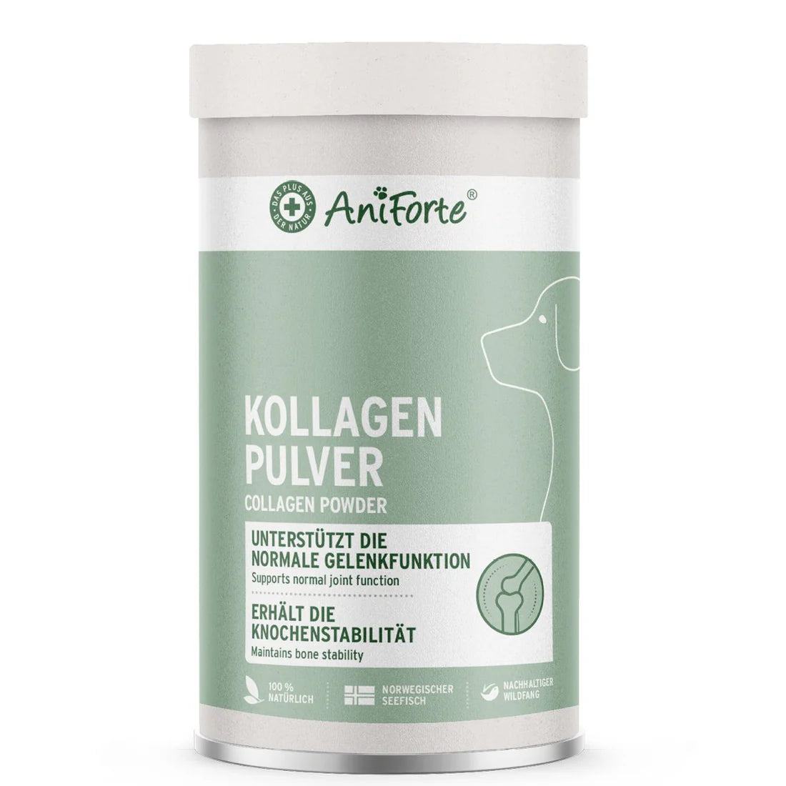Collagen is found in the skin and in joints, tendons, ligaments and cartilage. As dogs grow older, they produce less collagen, which can make them more susceptible to joint and bone issues. With the help of collagen peptides, the joints can be stimulated to produce more collagen and thus have a positive effect on the musculoskeletal system. In addition, collagen synthesis and vascular circulation can be maintained.
