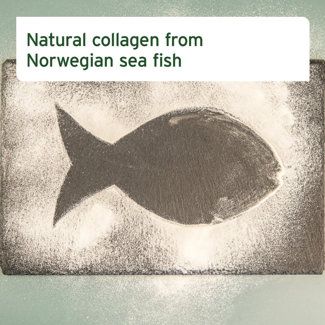 The high-quality collagen peptides contained in our product come from Norwegian sea fish and are obtained exclusively from sustainable wild catch. Only the skin of the sea fish is processed - therefore no further additives are included.