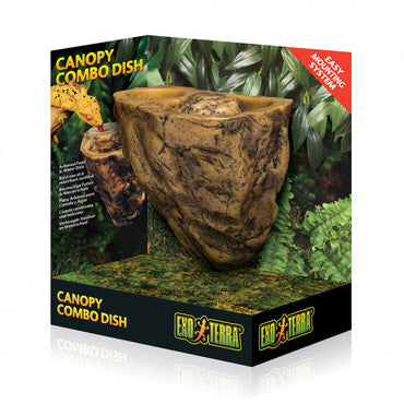 The Exo Terra Canopy Combo Dish is a convenient 2 in 1 food and water dish that can be mounted to any desired height. Simply stick the self-adhesive clip to the glass of your terrarium and mount the dish to provide your reptiles with a convenient food and water facility. Perfect for tree dwelling reptiles.