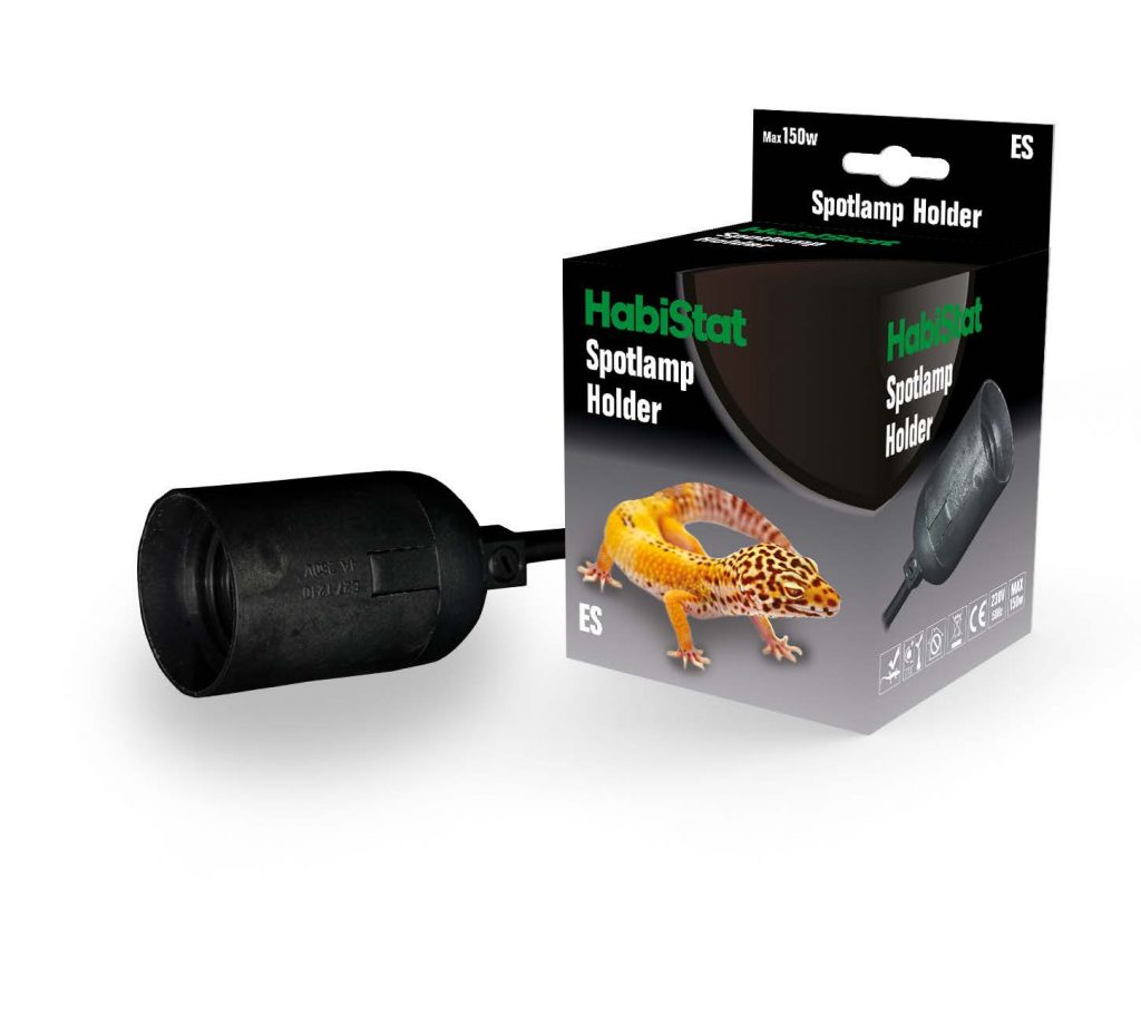 HabiStat Spot Lamp Fittings are a pendant fitting for use with spot lamps only. It is plugged and supplied with 2 metres of lead. Maximum rating 150 watts.