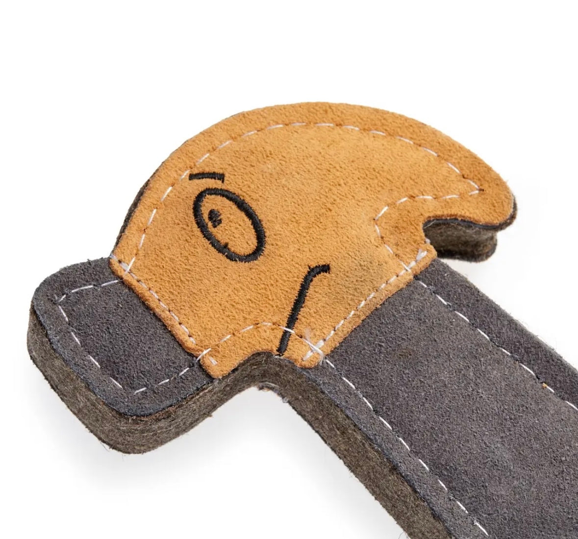 He's made from natural jute and stitched over with soft suede. Jute is 100% recyclable and sustainable. The suede is a by-product, ensuring that this material is not wasted. It is tough and long lasting and is produced without using any added compound that would harm or be released when chewing. This ensures hours of safe fun for you and your dog.
