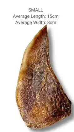 Beef Moon Bones are 100% air dried beef cartilage. A long lasting chew, it is softer and more flexible than bone and unlike bone, cartilage won't splinter. Great for tough chewers and sensitive stomach, it is a natural source of Glucosamine and Chondroitin. It is low in fat, high in protein and has an intense aroma, sure to be attractive to all dogs and get their tails wagging.