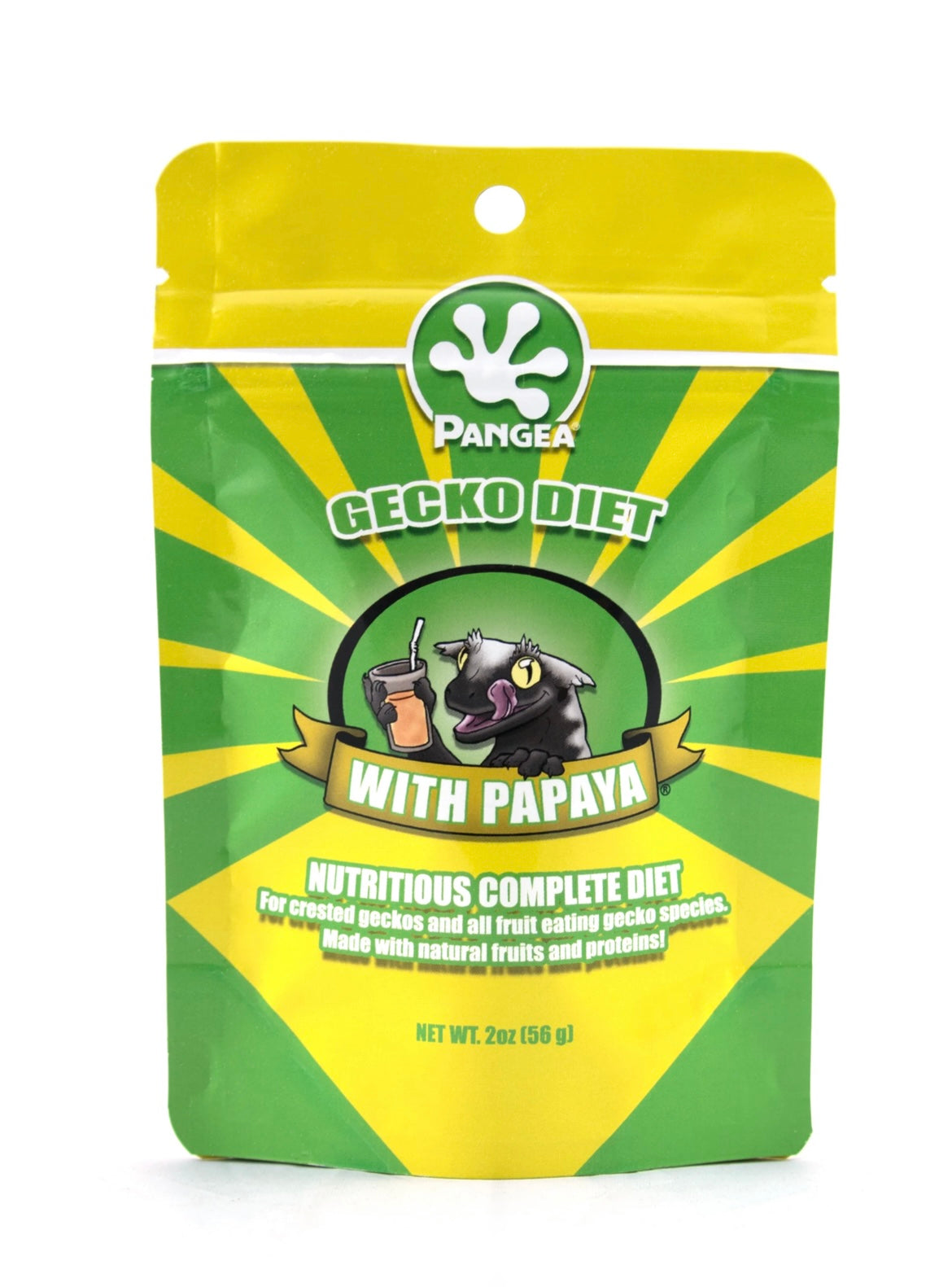 Pangeas Complete Diet for crested geckos, gargoyle geckos, leachianus, chahoua, day geckos, and all other fruit eating geckos uses a combination of fruits that your geckos won't be able to resist. It has been formulated using only the highest quality ingredients, including All Natural Dried Fruits, Whey Protein Isolate, Egg White, Bee Pollen, Spirulina, Probiotics, and more. We do not use any seeds, nuts, seed meal, cereal grains or high oxalate fruits or vegetables in our product. We developed this product here at Pangea and hired a PhD in animal nutrition to make sure we got it right.