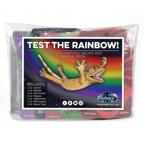 You asked for it, and you got it! We now offer a sample pack of ALL of our Gecko Diets, including Gecko Treat! This pack includes a 2oz sample bag of each flavor packed in a beautiful arrangement so your gecko can "Test the Rainbow".
