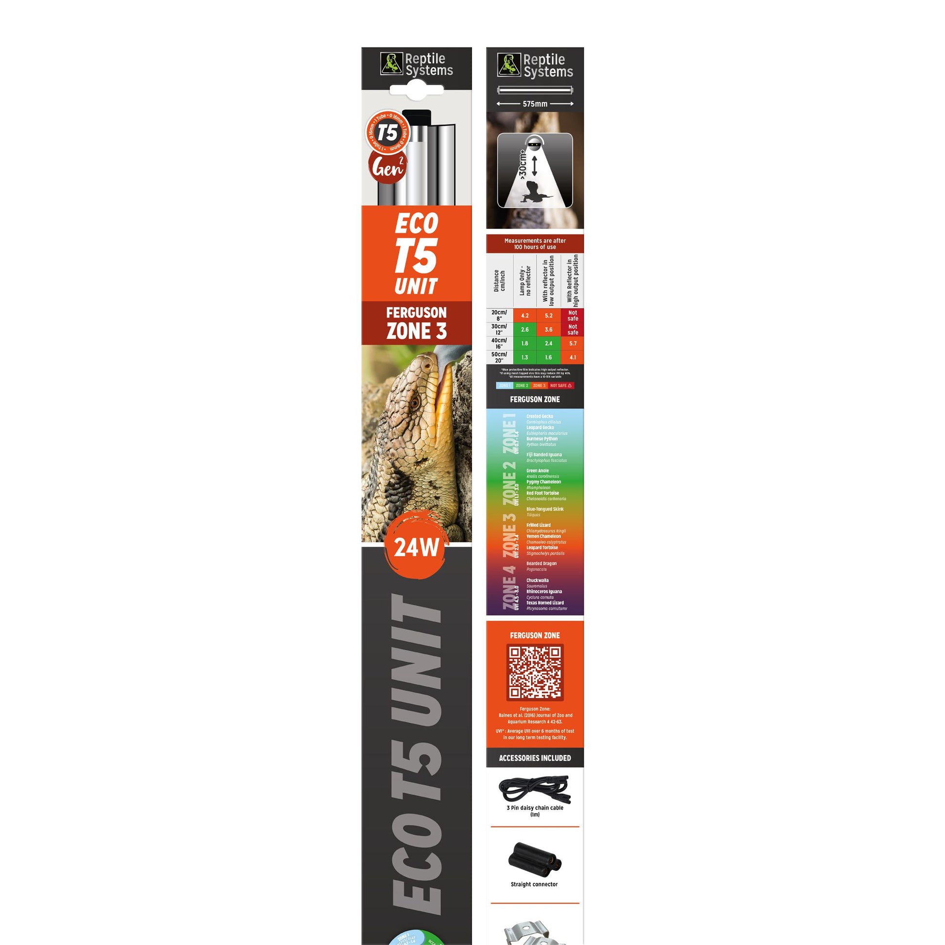 The Eco T5 Unit is a revolutionary way of thinking about UV lighting in our modern world. These are sold as Zone 1, Zone 2 and Zone 3, and you just need to check to see where you reptile falls in the Ferguson Zone in order to get the perfect lighting they require.