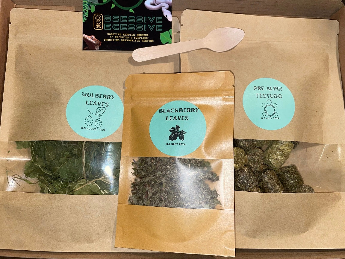 Tortoise Leaf Lover Letterbox Treat Gift Box Forgage Pellets Fibre Mulberry Leaves BlackBerry Leaves Natural Dried