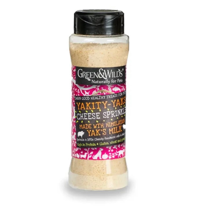 Yakity Yak Cheese Sprinkle comes from the Yakity Yak Chews which are hand crafted from a blend of 100% yak's/cow's milk, with a little lime and salt and then smoked to form a hard, tasty, cheesy chew.
